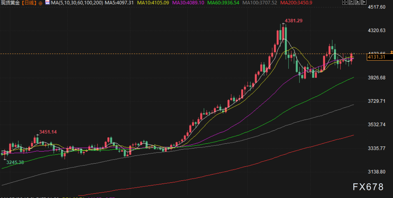 汇通财经APP讯——周二(北京时间11月25日)亚市早盘,现货黄金交投于4128.50美元/盎司附近,金价周一上涨近1.7%,主要受益于市场对美联储将于12月降息的预期不断增强;美原油交投于58.92美元/桶附近,市场对美联储可能于12月降息的预期提振了风险资产,同时投资者对俄罗斯能否顺利达成推动其石油出口的乌克兰和平协议持谨慎态度限制了油价的跌幅,